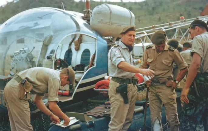 1965 年在刚果(金),迈克·霍尔(左二)安排伤员恐慌。图/英国《逐日电讯报》