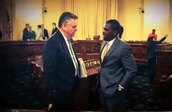 马兰加(右)与好意思众议员彼得·金交谈。图/马兰加个东谈主网站