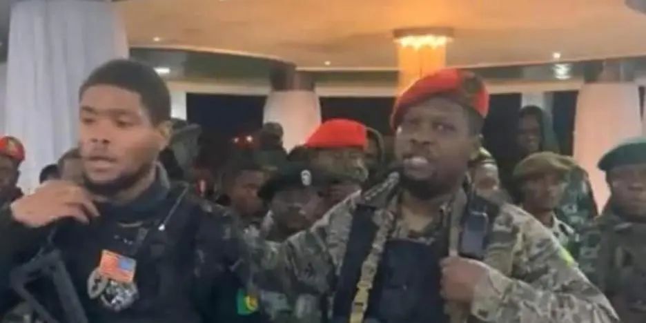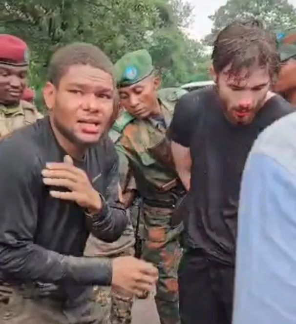 马塞尔(左)和另又名好意思国东谈主被逮捕。图/“非洲地平线”网站视频截图